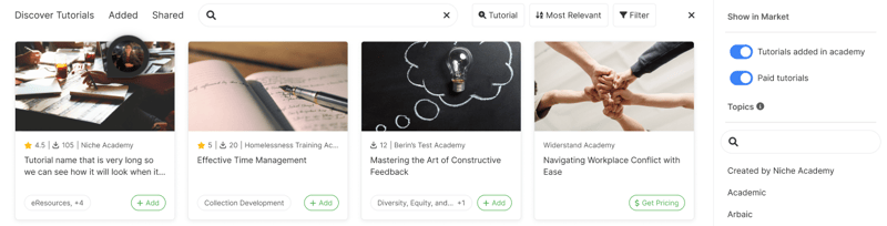 - These updates will also be reflected in Tutorial Reports, Reusable Content, Marketplace content preview and Archived Content in Tutorials.